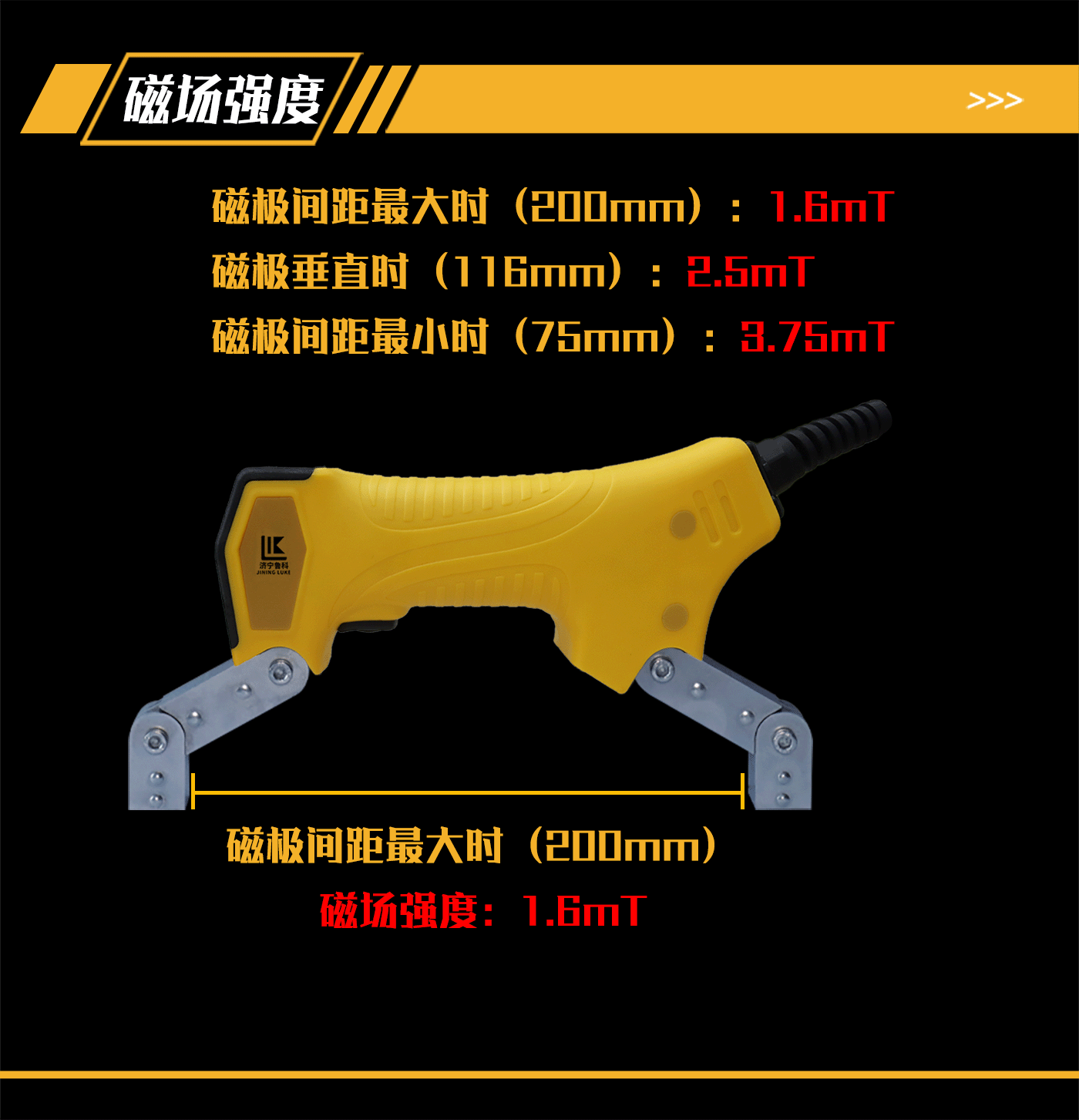 4、超短磁極腳工作模式,可提高磁場強(qiáng)度、靈敏度。