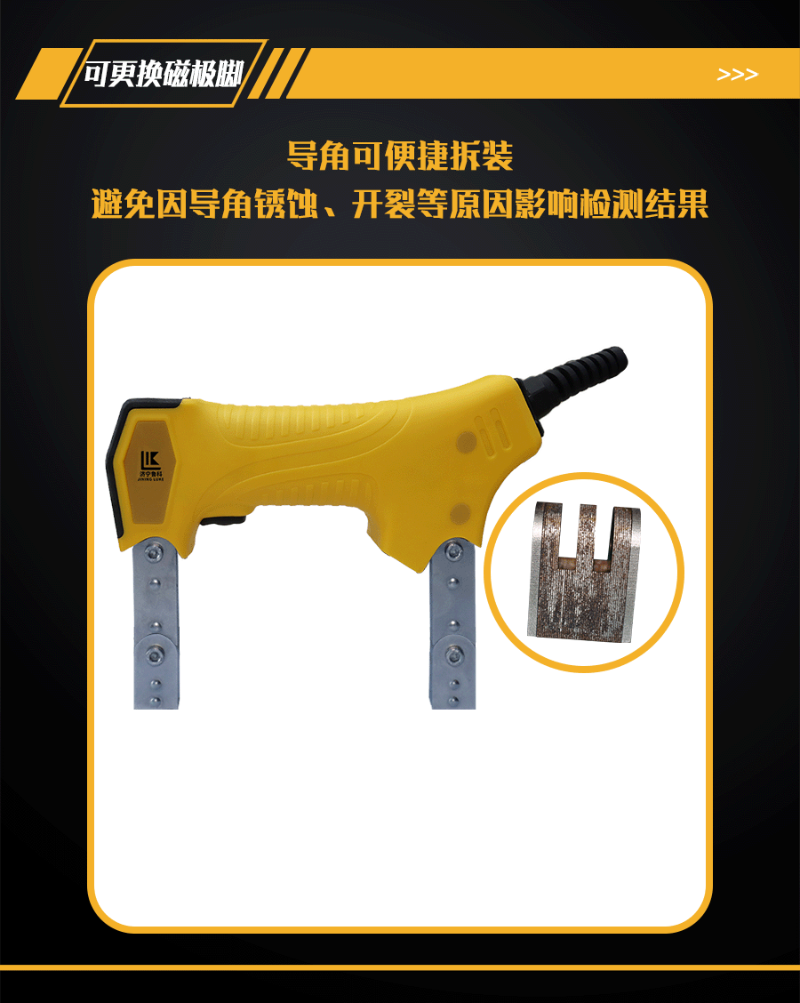 3、平面、A型、45°、大斜面4種磁極腳,適用更多的檢測工件。(選配)