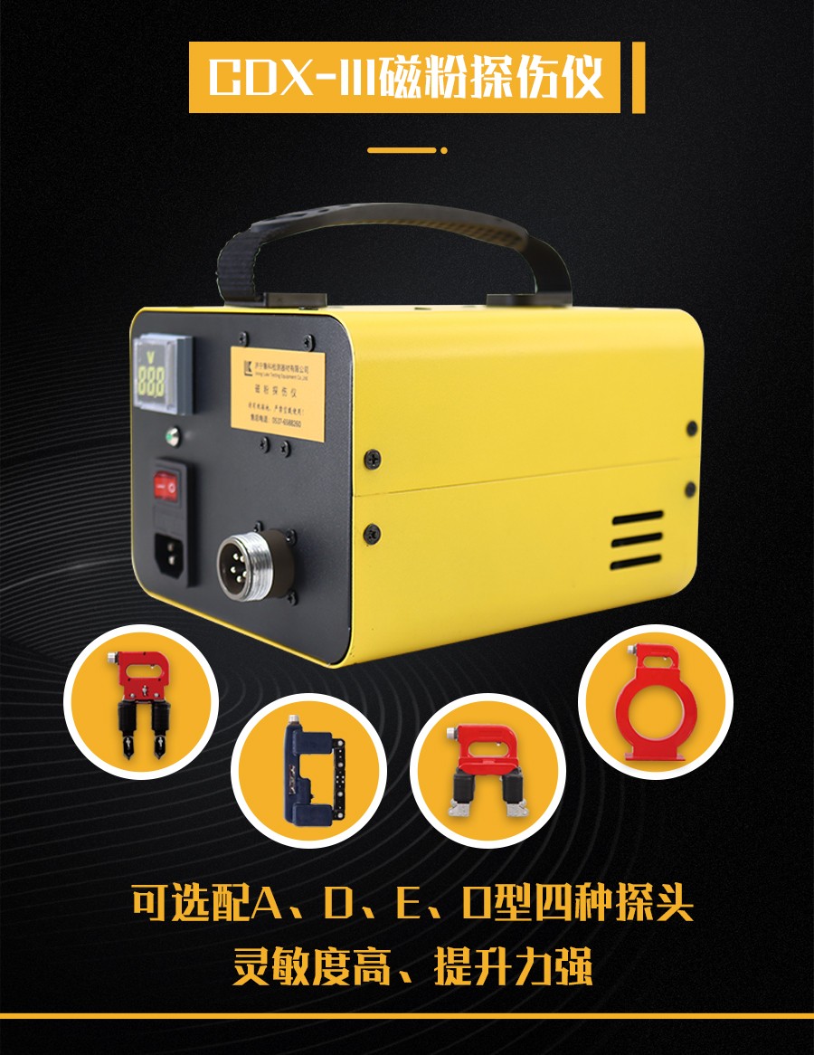 (2)D型探頭:也稱電磁軛探頭,探頭具有導(dǎo)磁高、磁化強(qiáng)度大等特點。極距40mm—220mm,提升力AC≥55N,重量:2.6kg;