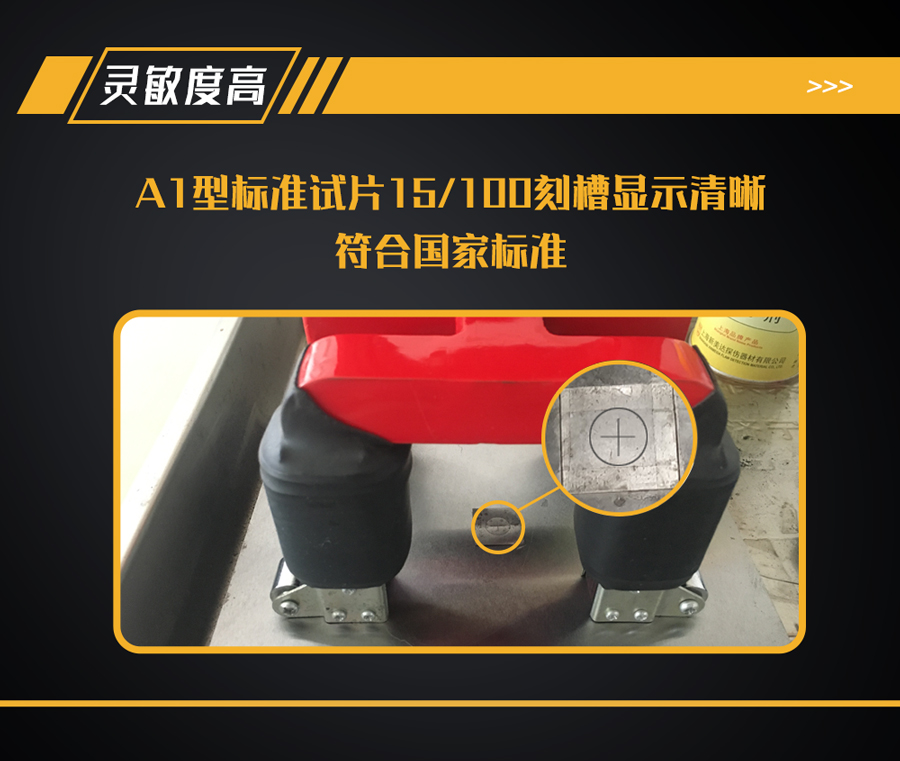 2、靈敏度高,可清晰完整地顯示A1型(15/100)標(biāo)準(zhǔn)試片上的刻槽,符合國家標(biāo)準(zhǔn);