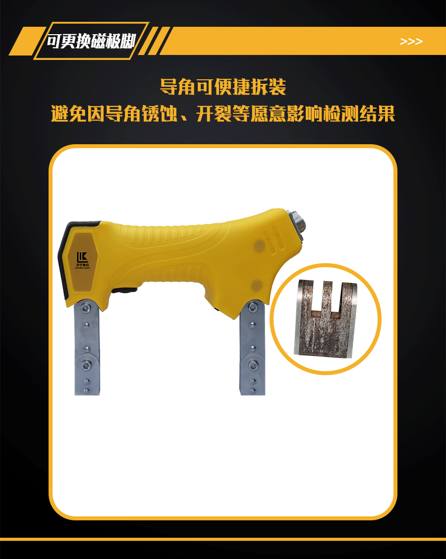 4、平面、A型、45°、大斜面4種磁極腳,適用更多的檢測工件。(選配)