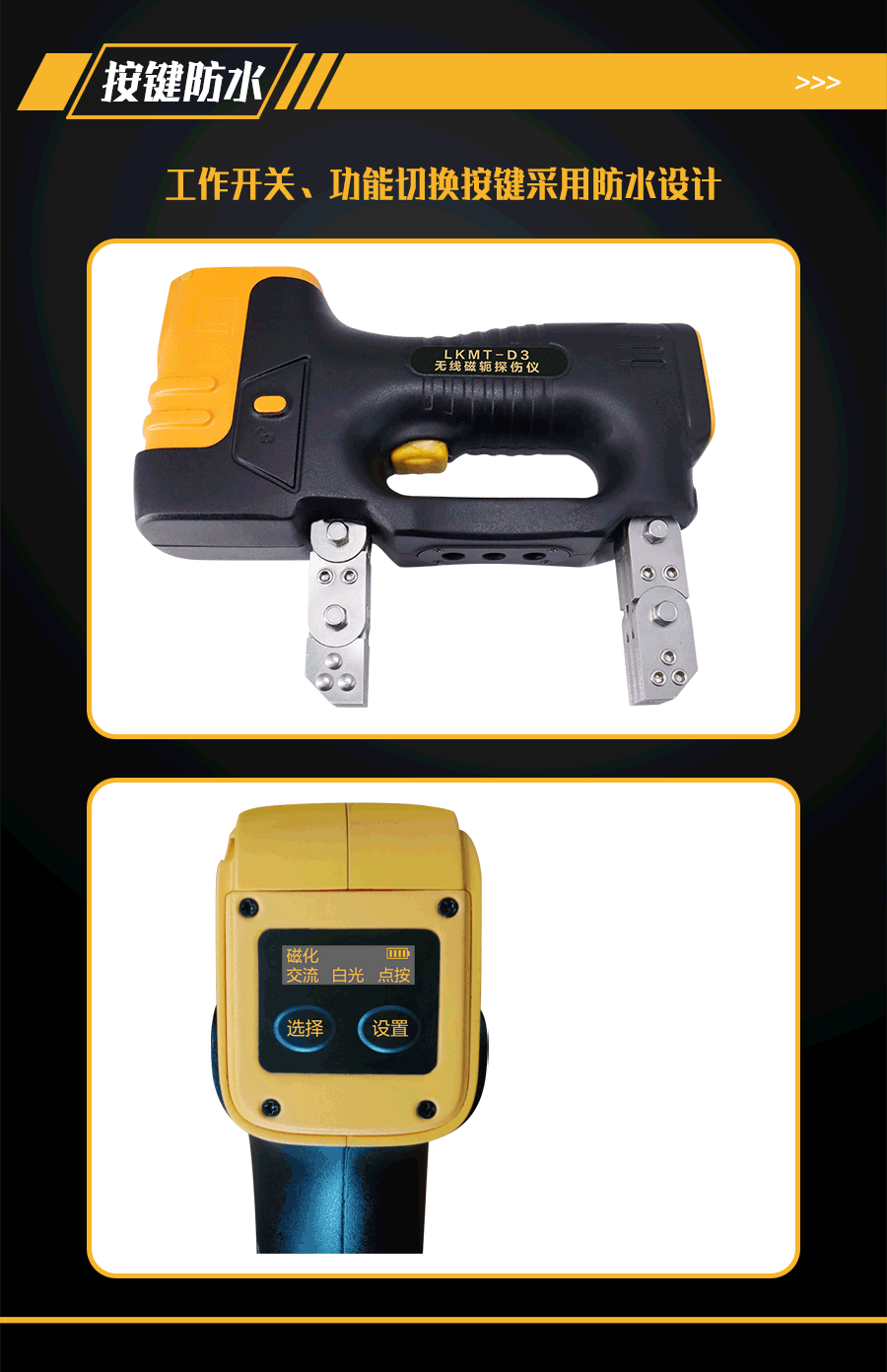 1、LKMT-D3一體式交直流磁軛探傷儀,探頭與鋰電池一體式設(shè)計,無需使用線鏈接。