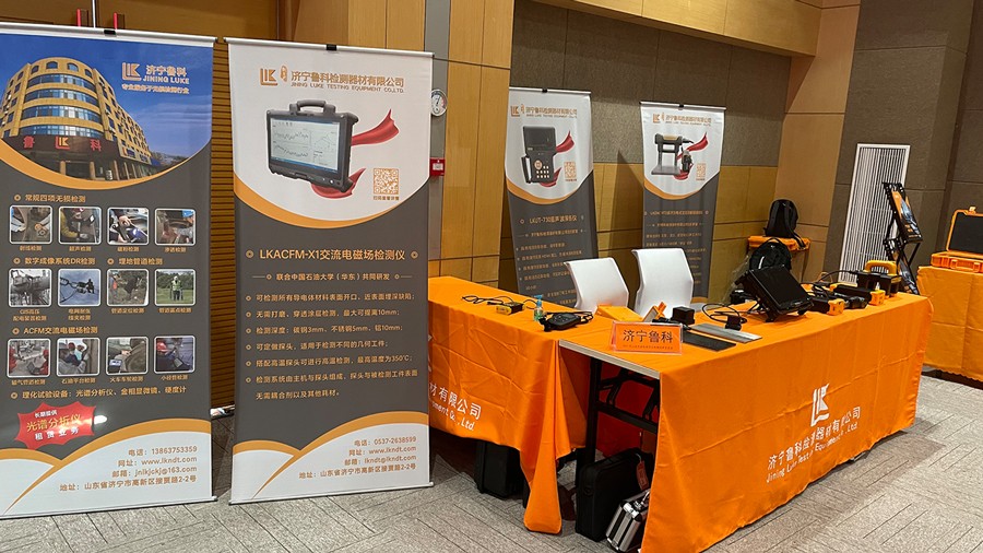 會(huì)議同時(shí)舉辦無(wú)損檢測(cè)設(shè)備展覽,濟(jì)寧魯科檢測(cè)器材有限公司攜聯(lián)合中國(guó)石油大學(xué)(華東)共同研發(fā)的ACFM交流電磁場(chǎng)檢測(cè)儀、 代理英國(guó)信固M5-C3系列超聲波測(cè)厚儀、自主研發(fā)的超聲波測(cè)厚儀、超聲波探傷儀、觀片燈、磁粉探傷儀、里氏硬度計(jì)等無(wú)損檢測(cè)儀器高光亮相。