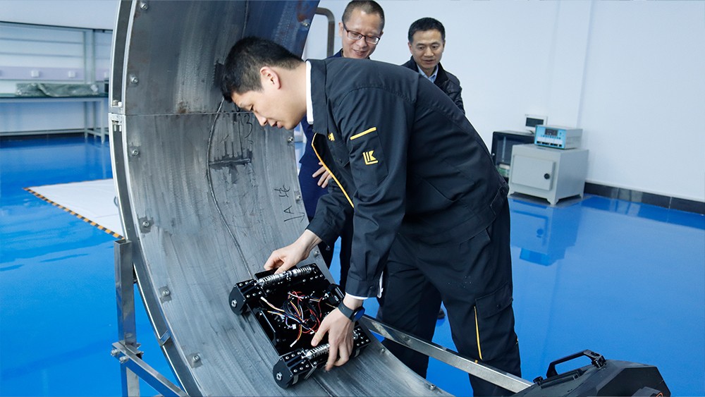 2024年4月17日-18日,上海材料研究所有限公司無損檢測事業(yè)部蔣建生主任、王森副主任,銷售市場部滕健主任一行受邀蒞臨我司考察指導,先后參觀了我公司埋地管道實訓基地、無塵車間、研發(fā)中心實驗室等,對我公司自主研發(fā)的無線式磁粉探傷儀、管道磁粉探傷儀、角焊縫磁粉探傷儀、腐蝕測厚機器人、ACFM交流電磁場檢測儀等設(shè)備進行性能測試,均達到預(yù)期效果,對我公司研發(fā)、生產(chǎn)及售后能力給予高度評價。