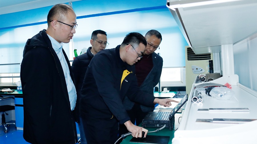 2024年1月10日,廣東省特種設(shè)備檢測(cè)研究院順德檢測(cè)院一行蒞臨我司參觀指導(dǎo),先后參觀了我公司無塵車間、實(shí)驗(yàn)室等,對(duì)我公司自主研發(fā)的無線式磁粉探傷儀、管道磁粉探傷儀、角焊縫磁粉探傷儀、腐蝕測(cè)厚機(jī)器人及聯(lián)合中國(guó)石油大學(xué)(華東)共同研發(fā)的ACFM交流電磁場(chǎng)檢測(cè)儀等設(shè)備進(jìn)行性能測(cè)試,均達(dá)到預(yù)期效果,并對(duì)我公司研發(fā)、生產(chǎn)及售后能力給予高度肯定。