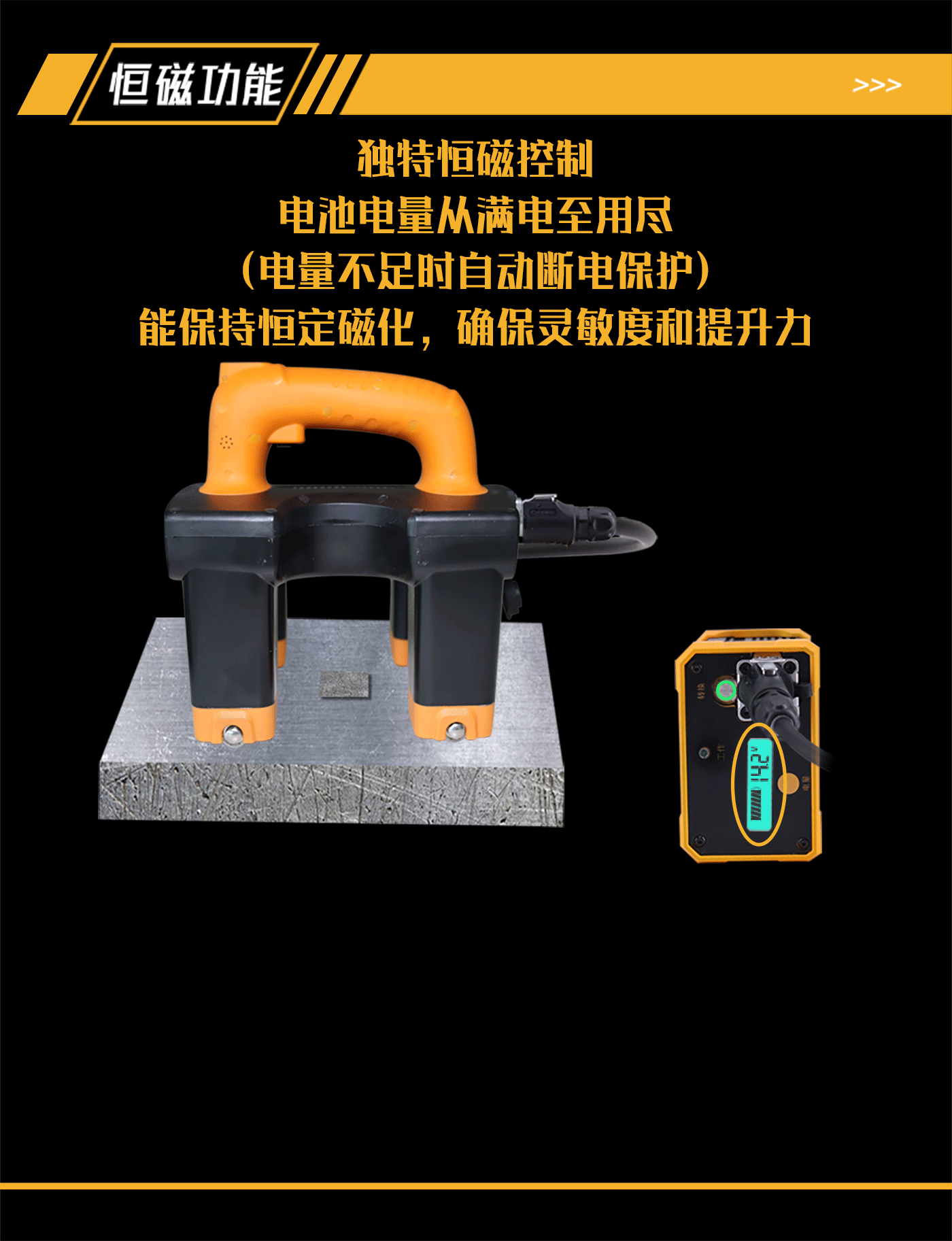 8、恒磁控制功能,因電量下降導致提升力不滿足探傷需求時自動斷電,保證探傷靈敏度;