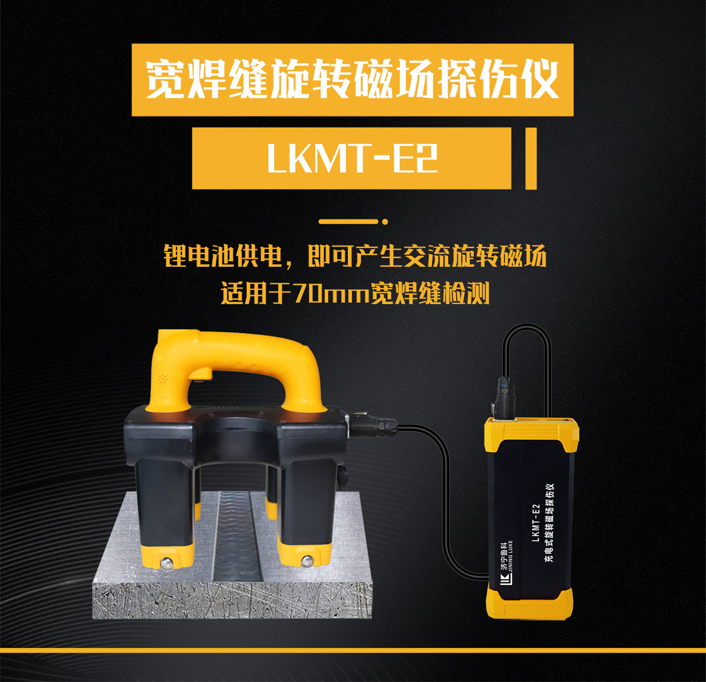 1、LKMT-E2寬焊縫旋轉(zhuǎn)磁場探傷儀,采用鋰電池電源供電,無需外接110V或220V電源即可產(chǎn)生交流旋轉(zhuǎn)磁場進行探傷;