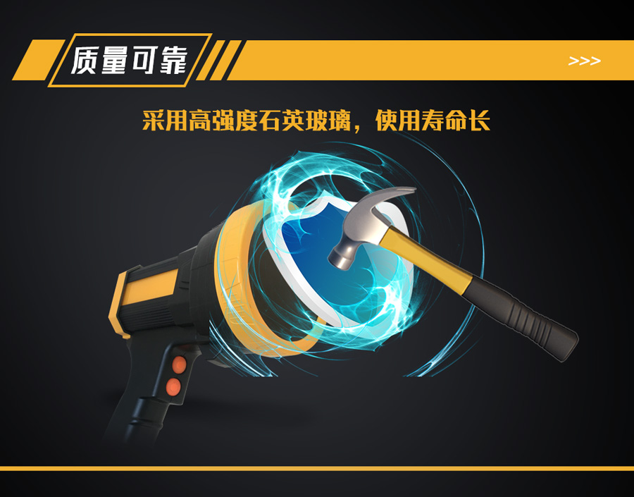 7、采用防爆紫外透過濾光片,安全可靠,紫外線透光率高,白光成分低,探傷效果好;
