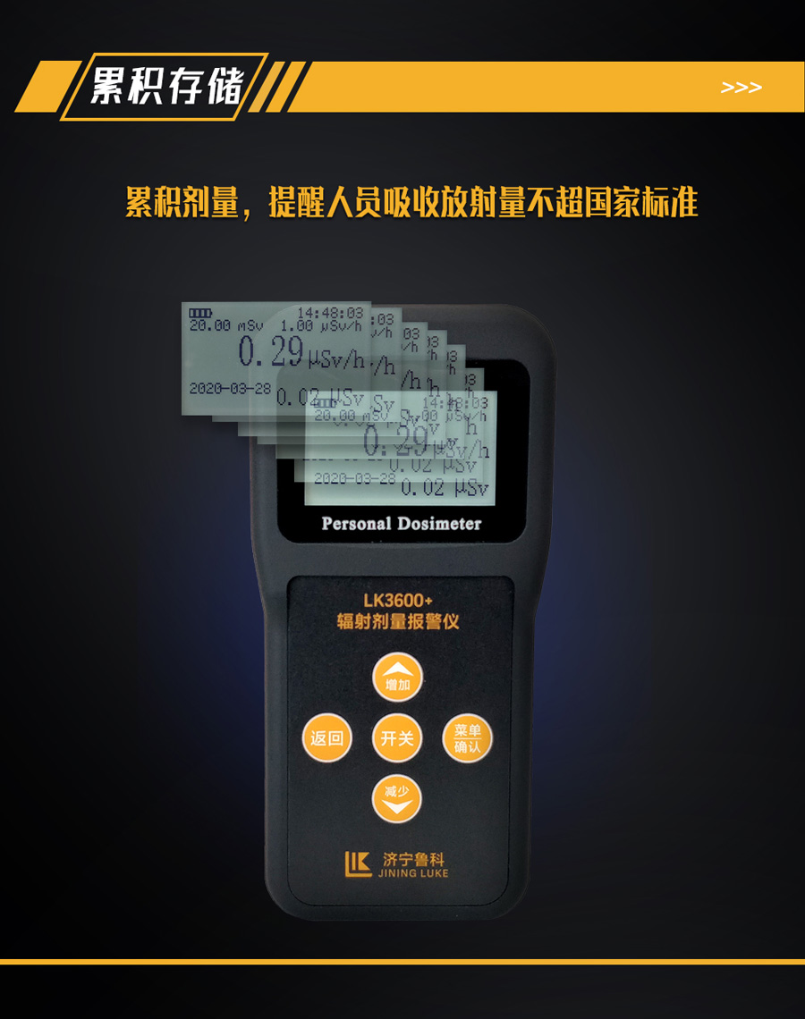 6、累積存儲:累積劑量,提醒人員吸收放射量不超國家標準;