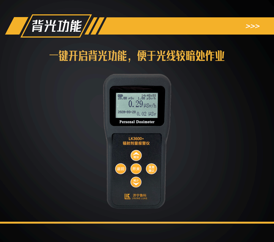 5、顯示方式:中英文雙語顯示,超大液晶顯示屏,劑量率、累積劑量同屏顯示;