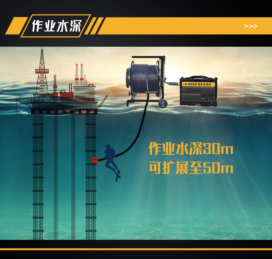 3、可檢測表面 350℃高溫中的非疲勞裂紋;可用于水下500m 深度結(jié)構(gòu)缺陷檢測;
