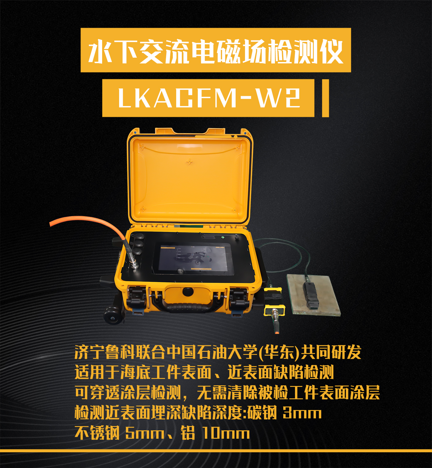 3、可檢測(cè)表面 350℃高溫中的非疲勞裂紋;可用于水下500m 深度結(jié)構(gòu)缺陷檢測(cè);