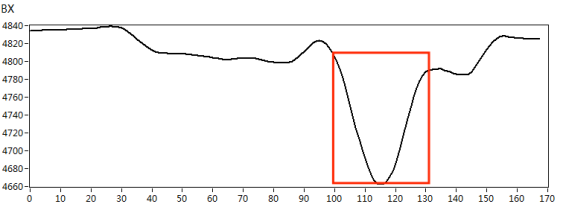 我們根據(jù)實際檢測對象的材質(zhì),制作了420*180mm規(guī)格的碳鋼材質(zhì)小接管管座試塊,試塊上角焊縫位置處分別長度*深度為10mm*3mm、5mm*2mm人工刻槽作為模擬缺陷,如下圖3所示。采用X1-LP-10型筆式探頭,首先在功能測試試塊上對交流電磁場檢測系統(tǒng)的綜合性能進行核查,得到典型缺陷的特征信號,如圖4所示。然后再對小接管管座試塊進行缺陷掃查,得到以下缺陷掃查圖像,檢測圖像如圖5、圖6所示。