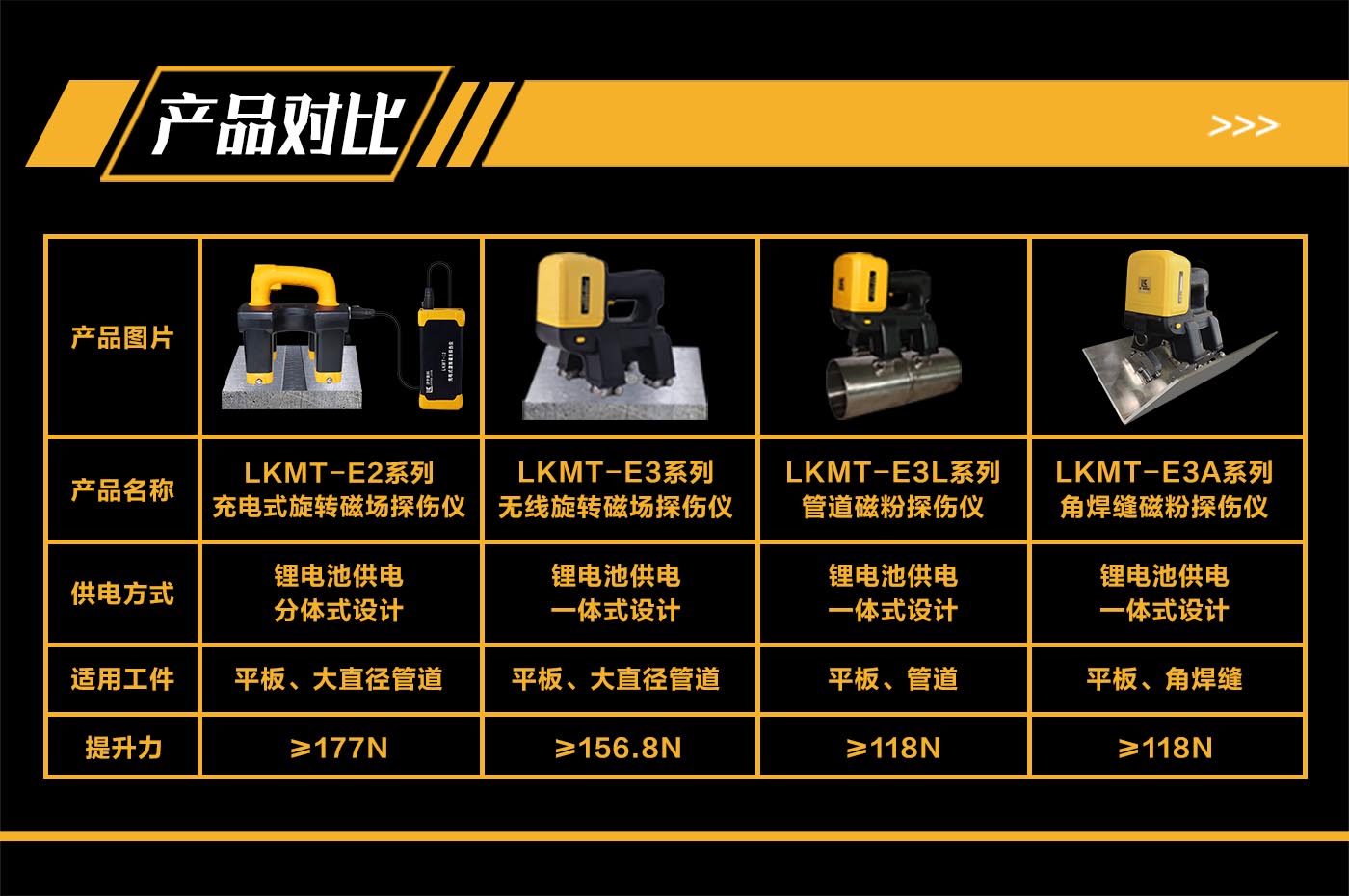 1、LKMT-E3AS一體式旋轉(zhuǎn)磁場(chǎng)角焊縫磁粉探傷儀,探頭與鋰電池一體式設(shè)計(jì),無(wú)需使用線鏈接;