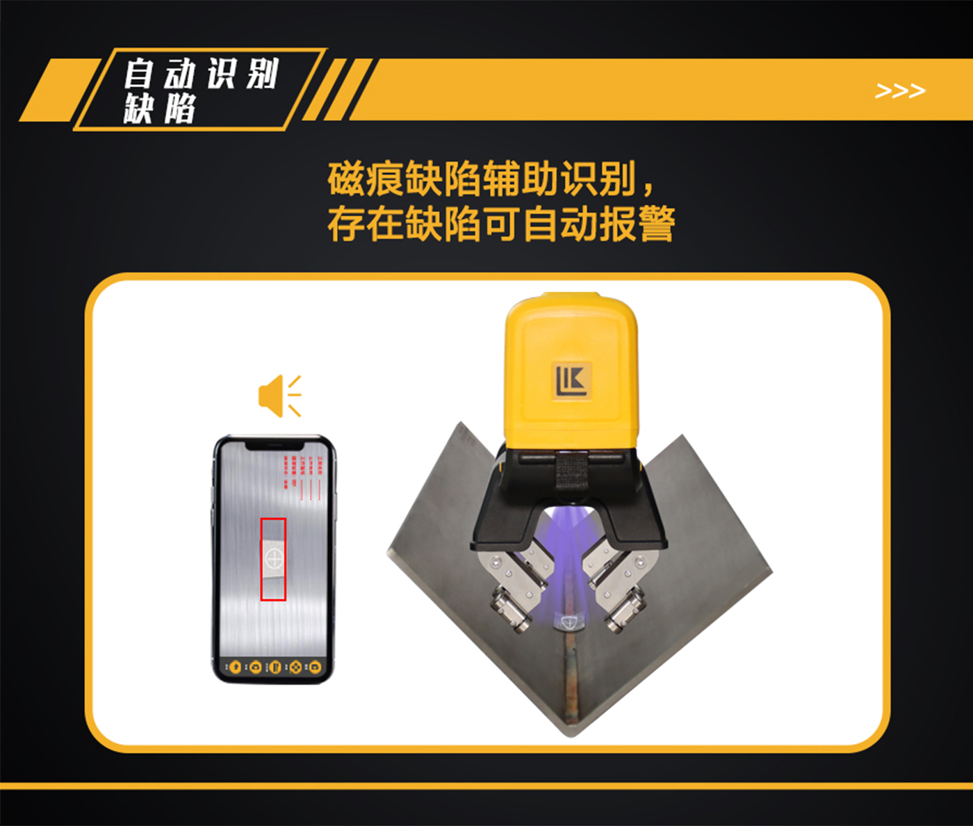 ? (2)自動(dòng)識(shí)別缺陷:磁痕缺陷輔助識(shí)別,發(fā)現(xiàn)缺陷可語(yǔ)音報(bào)警,并在圖像中自動(dòng)標(biāo)記出缺陷位置,將有缺陷的圖片保存到手持終端;
