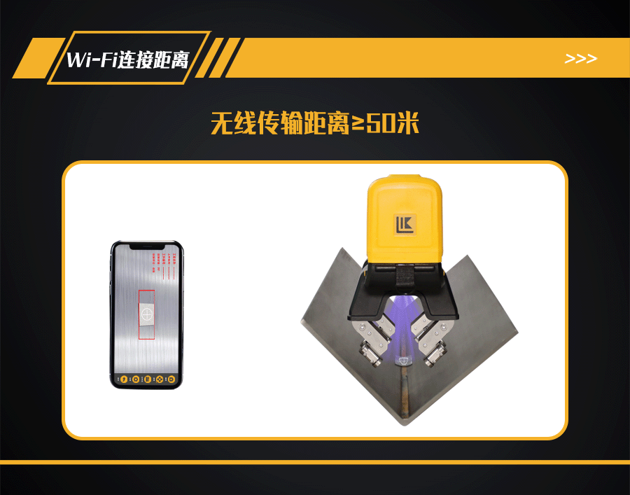11、探頭內(nèi)部裝有500萬(wàn)像素?cái)z像頭,手機(jī)、平板電腦或AR眼鏡等手持終端安裝APP軟件,通過(guò)Wi-Fi與探頭鏈接,手持終端實(shí)時(shí)顯示探傷狀態(tài);